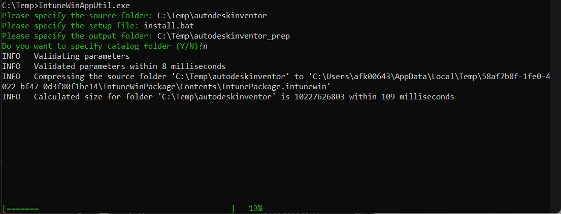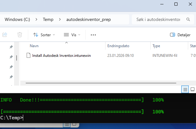 Nå skal installasjonsmappen pakkes om til en xxx.intune installasjonfil.