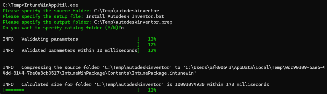 Nå skal installasjonsmappen pakkes om til en xxx.intune installasjonfil.